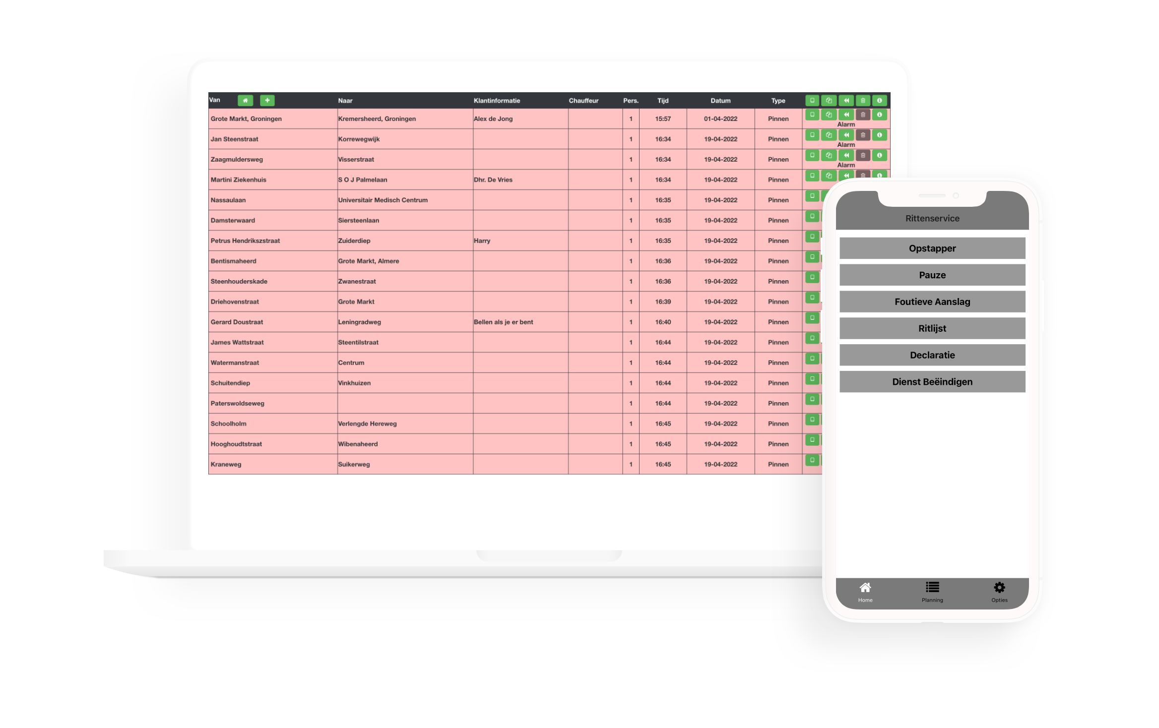 Rittenservice is een gebruiksvriendelijk platform waarmee je eenvoudig taxiritten kunt verwerken en plannen, urenadministratie kunt bijhouden, samen kunt werken met andere bedrijven door elkaar ritten te sturen en kilometerregistratie voor je voertuigen kunt bijhouden voor je computer, tablet of mobiele telefoon. Probeer Rittenservice nu uit en ervaar zelf de voordelen van ons platform!
